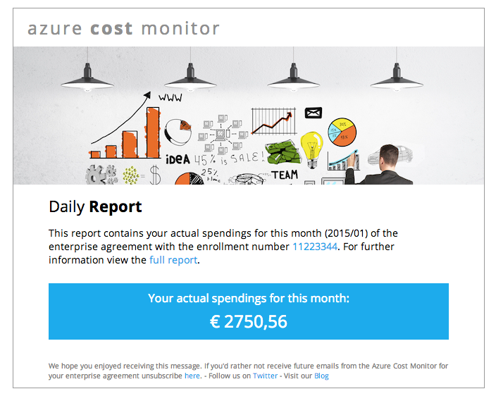 Managers always need to be aware about the most important KPIs within the company. The new daily spending reports of the Azure Cost Monitor give them the freedom to always have a quick and precise overview on the company’s cloud spendings.